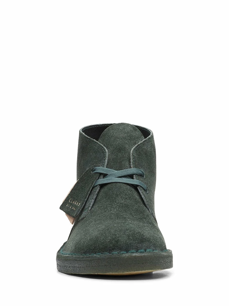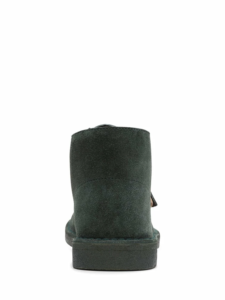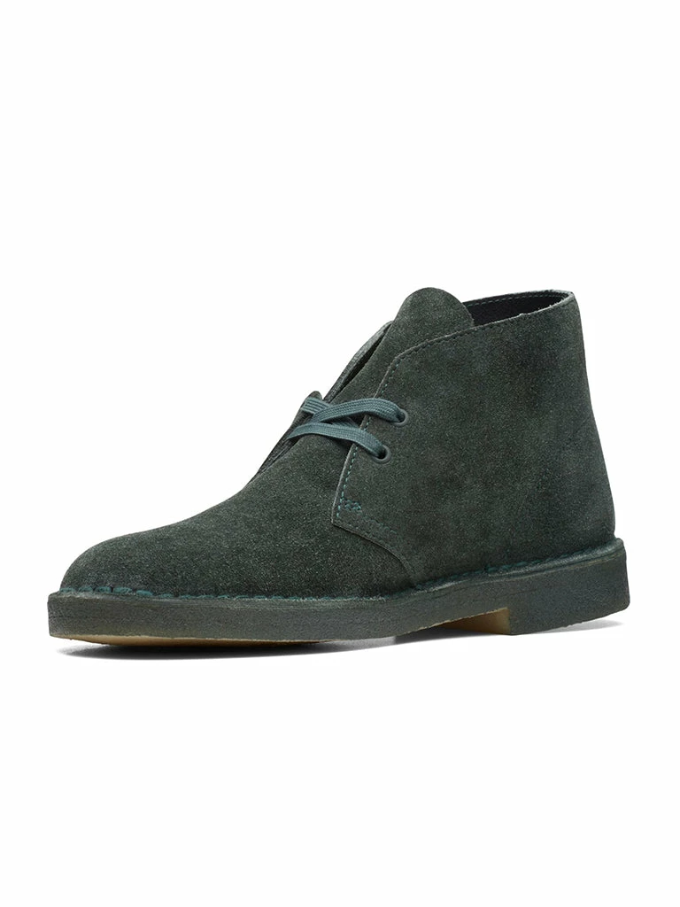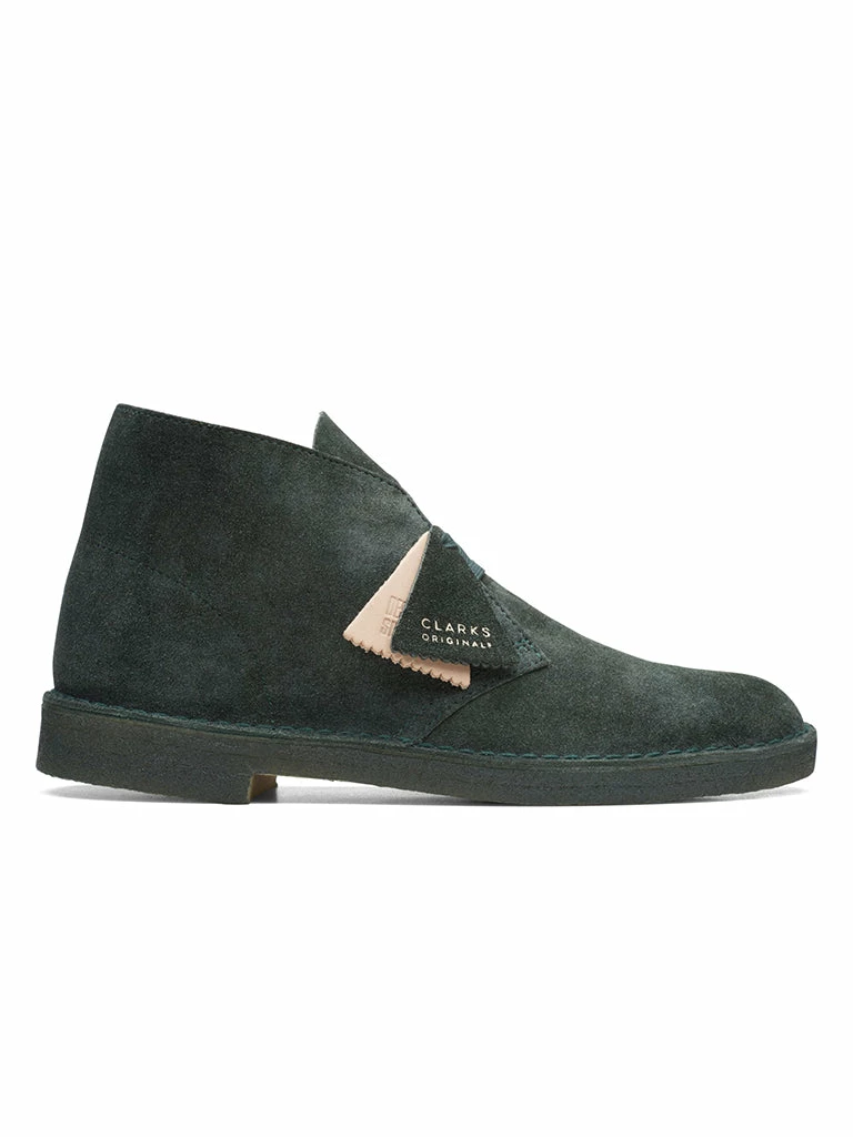 Flannel-like suede from Stead’s tannery gives Clark’s iconic Desert Boot a textural update. Its stonewash effect complements rich, autumnal hues of rich forest green – with a tonal midsole and matching painted crepe sole for a sleek silhouette.