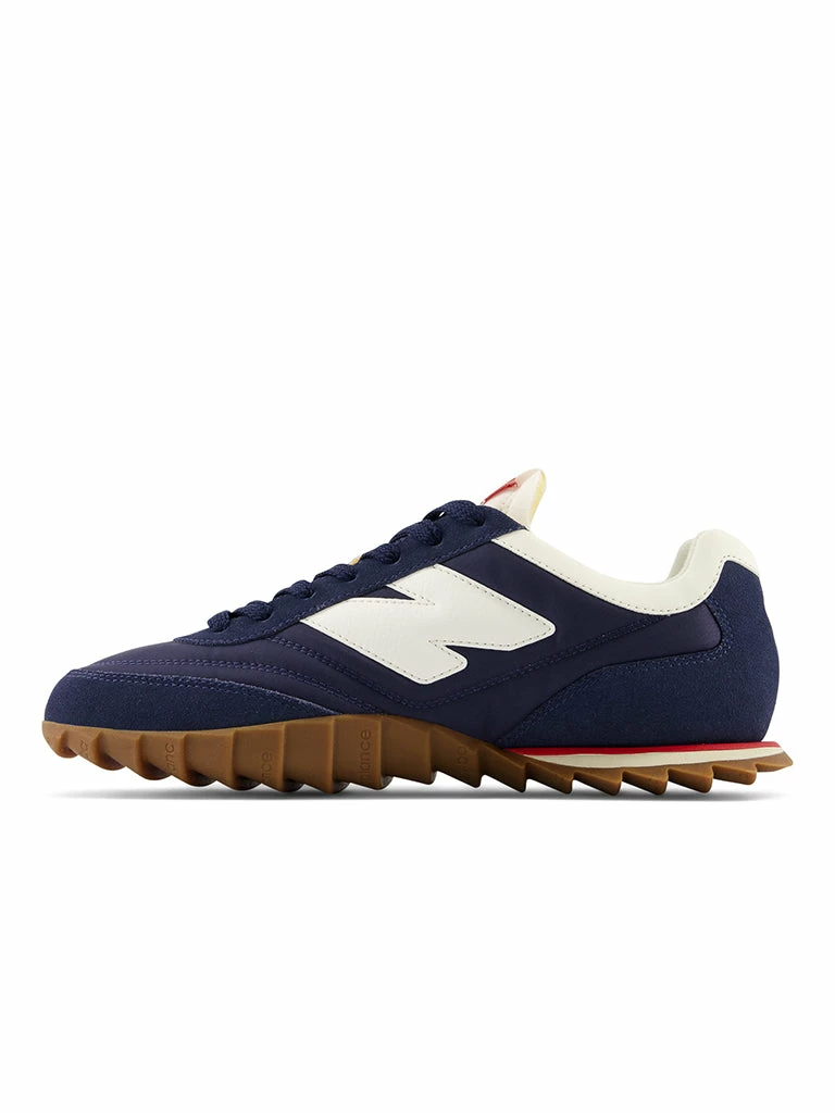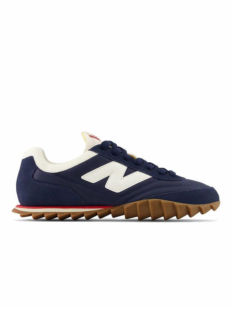 The RC30 revisits and reimagines a very specific section of the New Balance archive. The streamlined design of this new silhouette is inspired by classic, competitive racing models. The upper features classic nylon with suede accents, while reducing the overall number of panels. Rounded off edges on the ‘N’ branding , inspired by pre-N logo overlay designs, and a midsole stripe detail offer subtle call backs to features unique to archival competition models. An exaggerated rippled design brings contemporary proportions to the defining feature of the historic, original Trackster, while a curved outsole and midfoot lift mimic the idiosyncrasies that occurred with ‘70s construction methods.