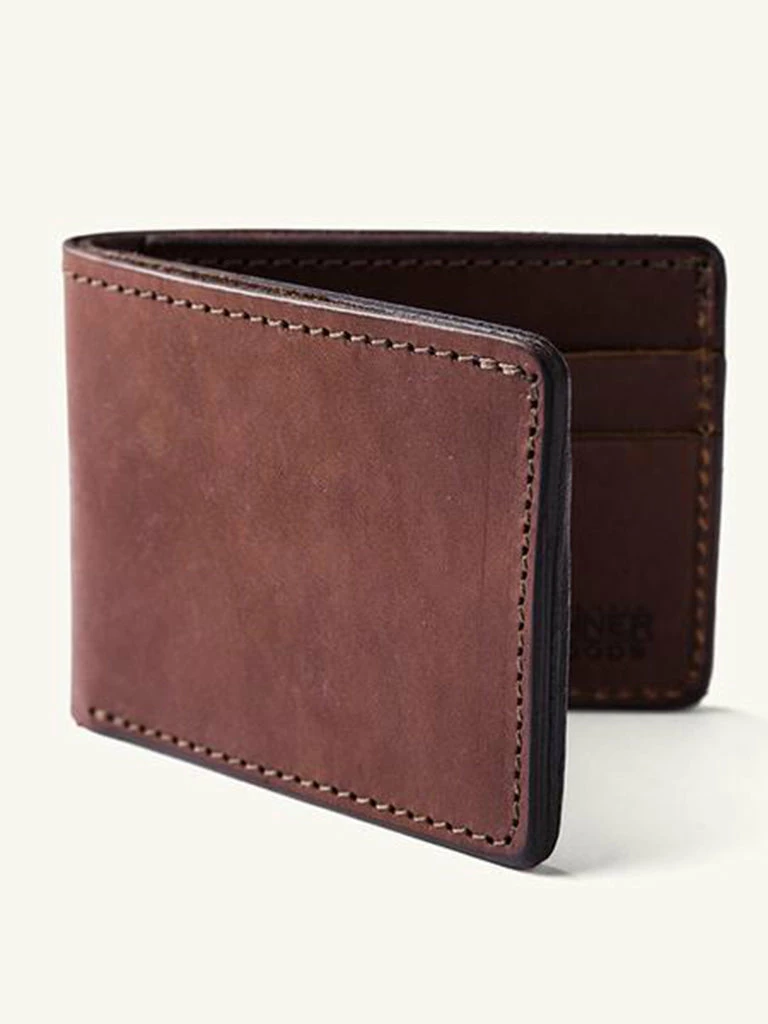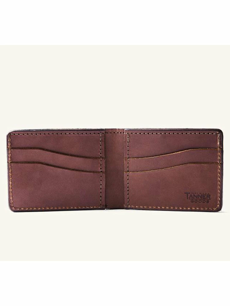 Constructed from 3.5oz. vegetable-tanned Meridian English Bridle leather, Tanner Goods’ Utility Bifold features four card-slot pockets, two hidden pockets, and one lengthwise pocket for bills. Each wallet is burnished, dyed, waxed, and stamped with Tanner Goods signature maker’s mark by hand. Bifold dimensions closed: 4.25″ x 3.25″