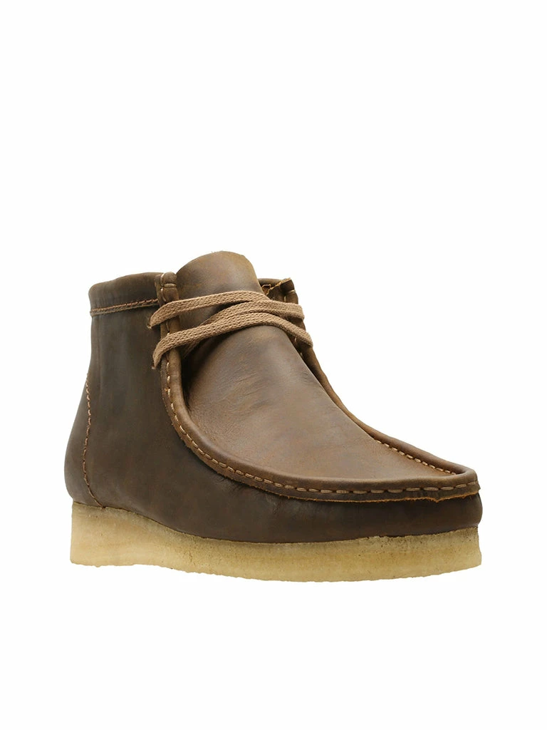 The Wallabee has become an iconic classic in the Clarks Originals collection across the globe thanks to its moccasin construction and structural silhouette. Featuring clean and simple lines, this comfortable lace-up boot in beeswax leather features a cushioned three-quarter sock for supreme comfort and Clark’s signature crepe sole which continues to stand the test of time.